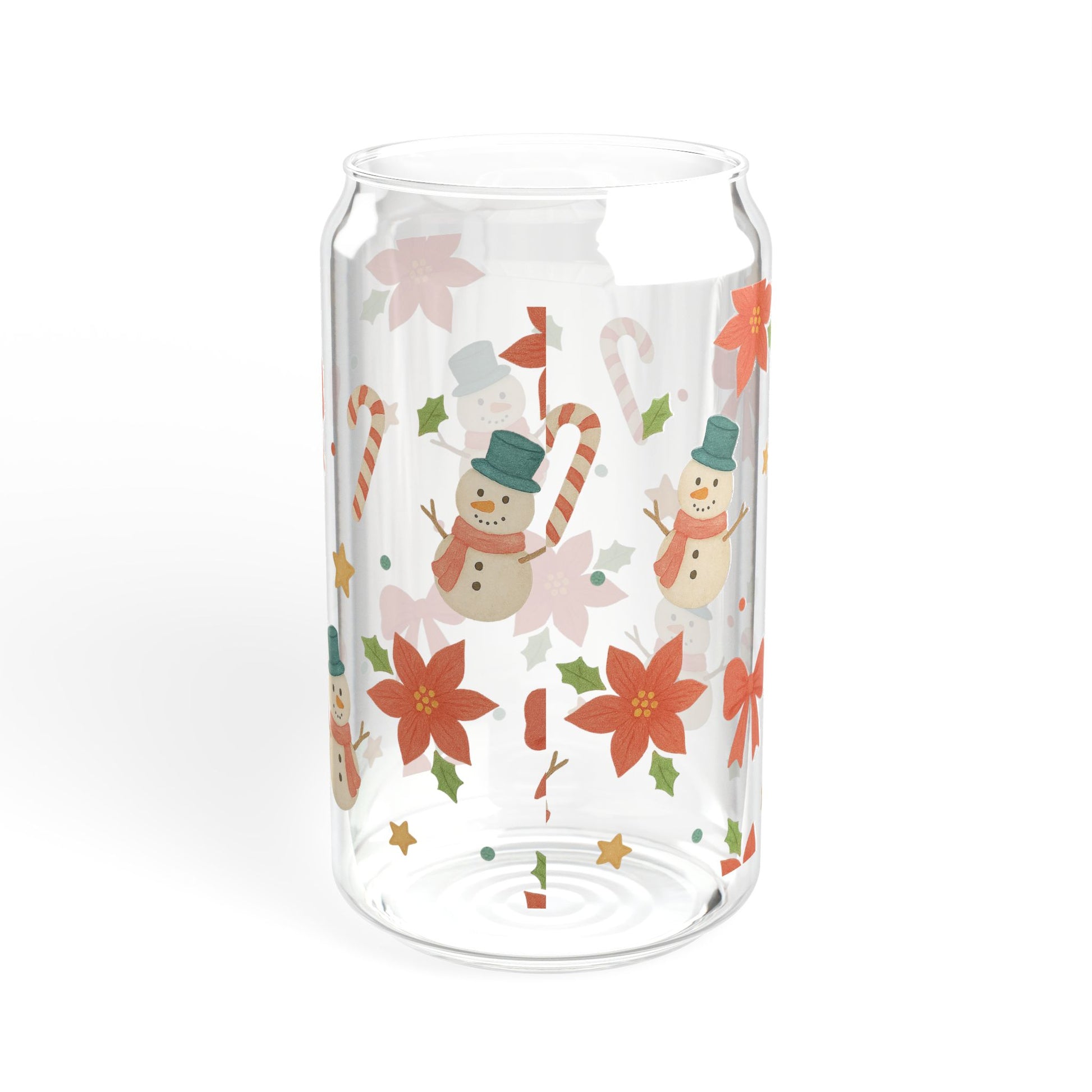 Christmas Snowmen & Poinsettia 16oz Sipper Glass