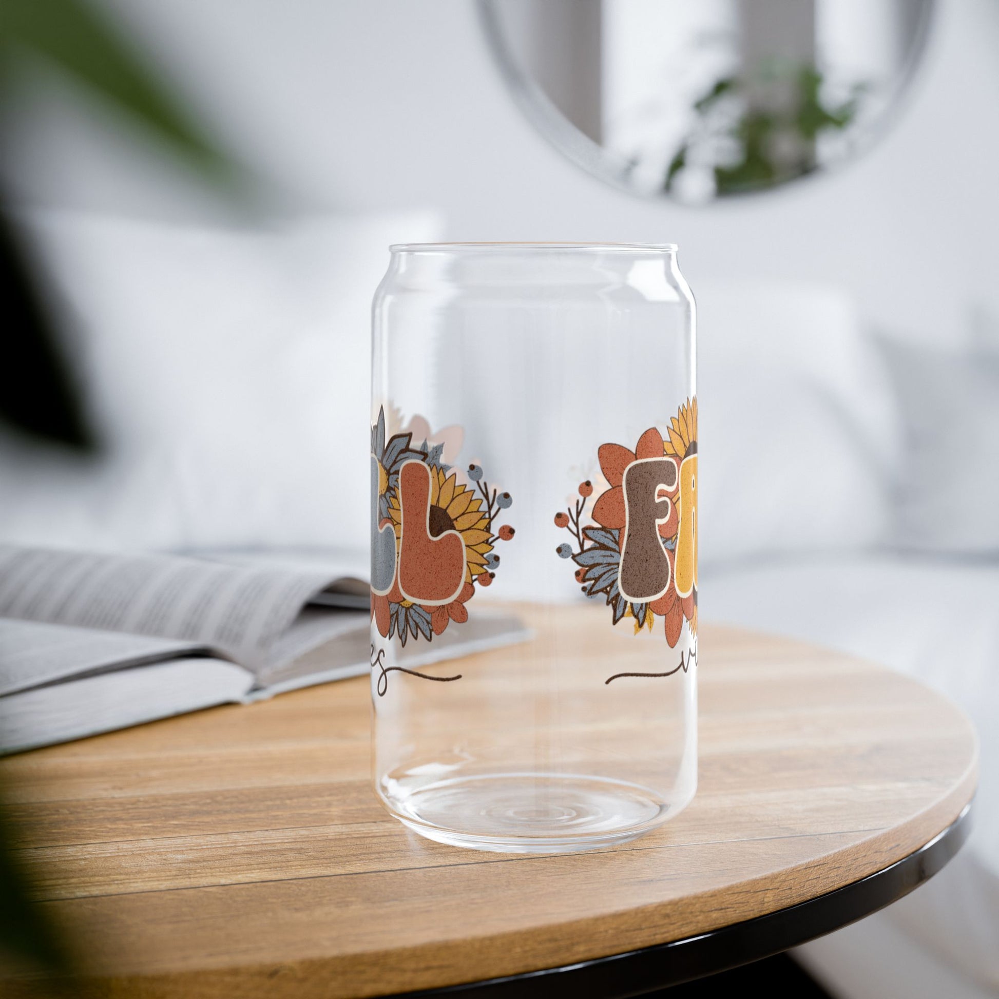 Glass Sipper Cup, Fall Vibes 16oz with Fall Print